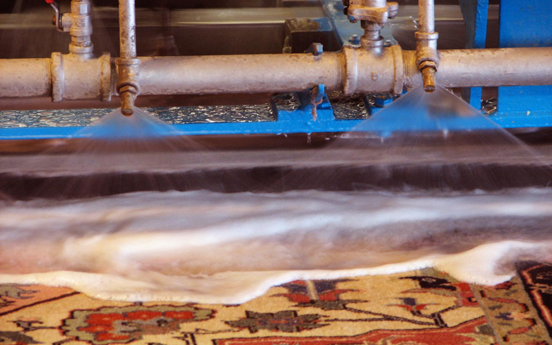 Toz dolabından geçen halılarınız 100% bitkisel Cleanvac halı şampuanı ile tam otomatik bant sistemli çift yönlü fırçalarla ön ve arkası dönüşümlü olarak halı yıkama makinesinden geçirilir. Varsa lekeye özel işlem uygulanır. Fırçalama işlemi bittikten sonra halı yıkama makinemizin son aşamasında halı üzerindeki şampuan ve su durulanıp vakumlanır.